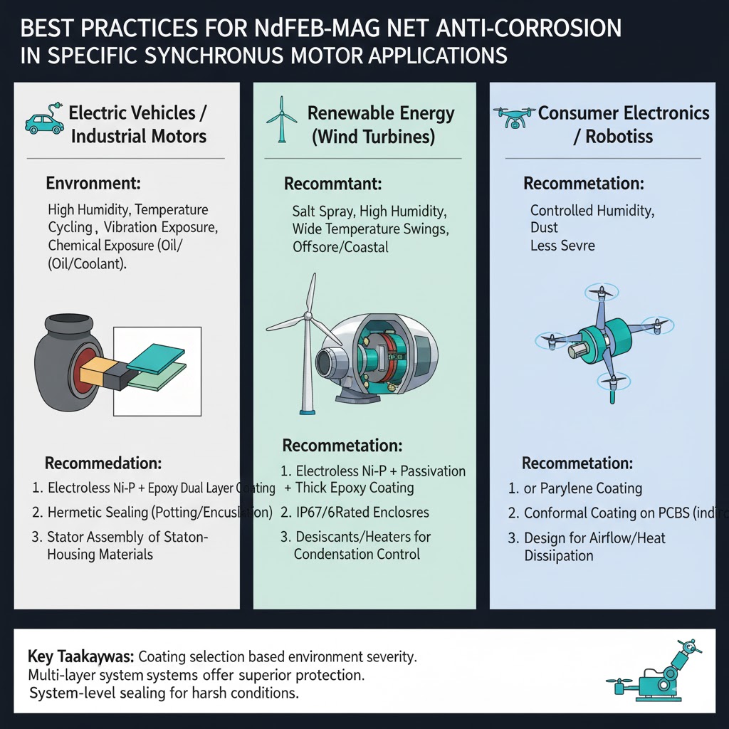 Stručně řečeno, ochrana slinutých magnetů NdFeB v synchronních motorech vyžaduje vícevrstvý přístup: účinné povrchové nátěry (přizpůsobené aplikaci), optimalizace designu (utěsnění pórů, těsnění rotoru) a pravidelnou údržbu (kontrola, kontrola vlhkosti). Kombinací těchto strategií mohou výrobci a operátoři prodloužit životnost magnetů z 5–8 let na 15–20 let, čímž se sníží prostoje motoru a náklady na výměnu, což je kritické pro spolehlivost elektrických vozidel, systémů obnovitelné energie a průmyslového vybavení.