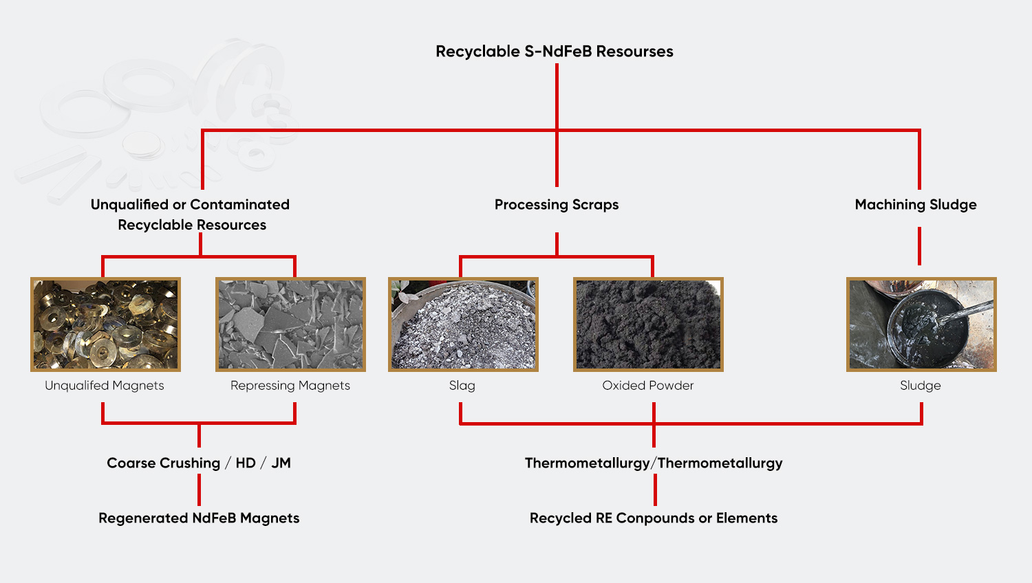 | Recyklace magnetického bahna Magnetické bahno vyrobené procesem mletí magnetického materiálu se používá k extrakci prvků vzácných zemin speciálním procesem a zbývající železný prášek lze použít jako metalurgickou surovinu, čímž se dosáhne míry využití odpadních zdrojů přes 90 %. | Zpracování řezné kapaliny Ultrafiltrační membránová separace pokročilá oxidační kombinovaná technologie se používá k oddělení oleje a vody v odpadní řezné kapalině. Kvalita upravené vody splňuje emisní normu 1. úrovně GB 8978-1996 a olejovou fázi lze rafinovat a znovu použít. | Systém recyklace odpadních forem Zaveďte systém řízení celého životního cyklu formy pro provádění oprav laserového pláště nebo regeneraci práškovou metalurgií na vyřazených karbidových formách, čímž se zvýší míra recyklace materiálu formy na více než 60 %. |